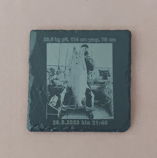 Lasinaluset laserkaiverrettuna laadukkalle liuskekivelle ja eri puumateriaalerille.